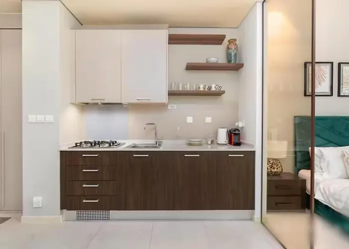 O Fully Furnished Studio With Amenities In Dubai inclui local de descanso e cozinha totalmente equipada com controle de temperatura para o máximo conforto. Os hóspedes que ficam no apartamento irão desfrutar da conveniência de secador de cabelo no casa de banho. Além disso, encontrará bidé, casa de banho separada e chuveiro.